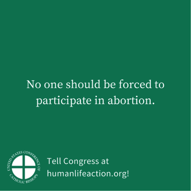 2. Contact your Congressional representatives () and urge them to pass the Conscience Protection Act.