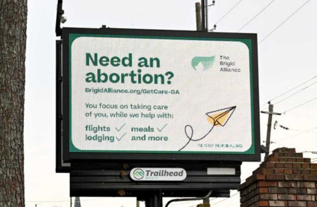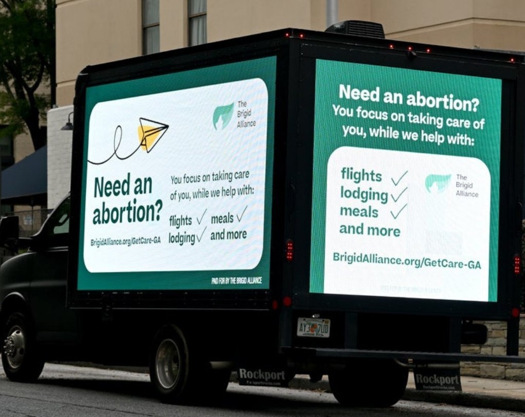 Brigid provides funding for women traveling to receive abortions, covering costs such as transportation, meals, hotels and child care. The organization set up several billboards in Georgia and Louisiana and also targeted online campaigns toward Floridians. Brigid has mobilized several billboard trucks advertising their abortion services.