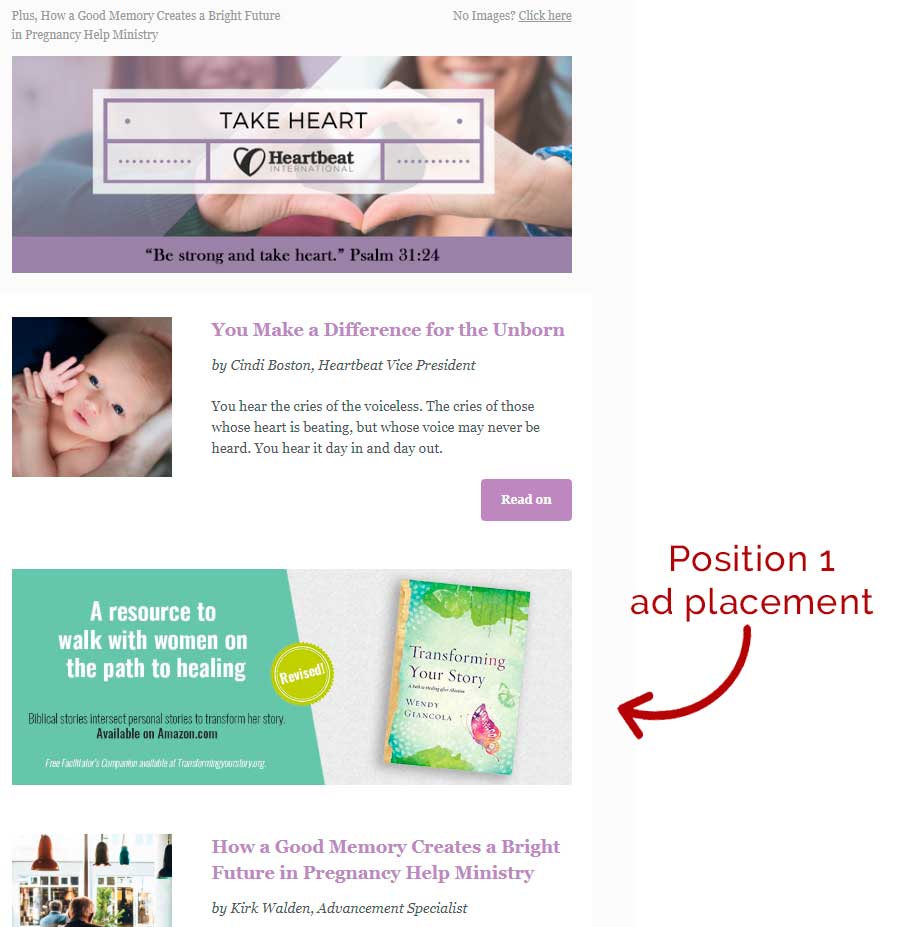 Email adsales@pregnancyhelpnews.com to inquire about purchasing ad space either at PregnancyHelpNews.com or in the Heartbeat International e-publications.