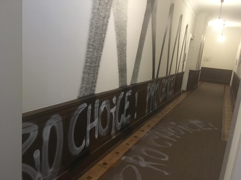 Aufiero shared videos and photos of the damage with Pregnancy Help News. They were taken Pro Femina’s counselor in Berlin, Bianca, who was the person to see the damage.
