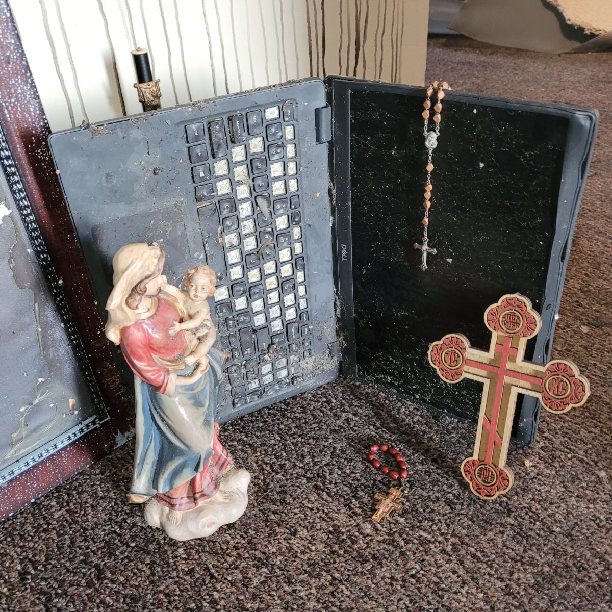 A statue, two crosses, and a rosary amazingly survived/CCETN