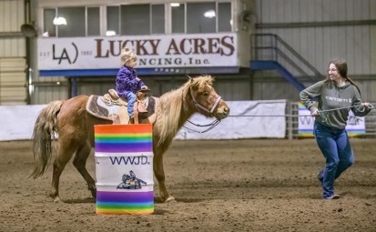 “She told me she is going to beat me,” Zayda beamed. “We have her do barrel racing and for little kids they have them do a stake race. At her age I just lead her through it. The goal is to have her ride by herself next year.”