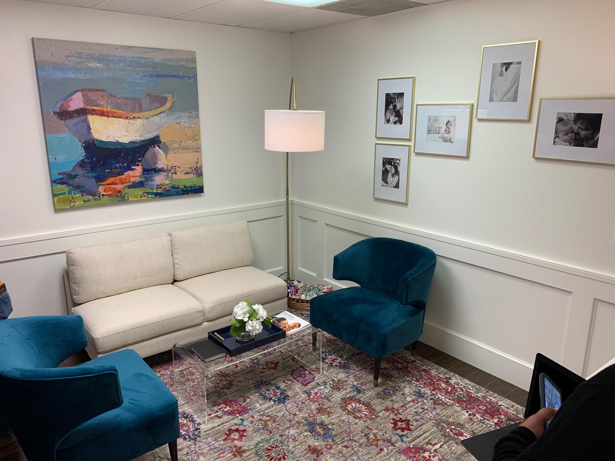 The new center sports white walls throughout the facility for brightness, except for the sonogram room and bathrooms, which have soothing and homey pale blue colors. Artwork with encouraging themes is also displayed throughout the rooms.