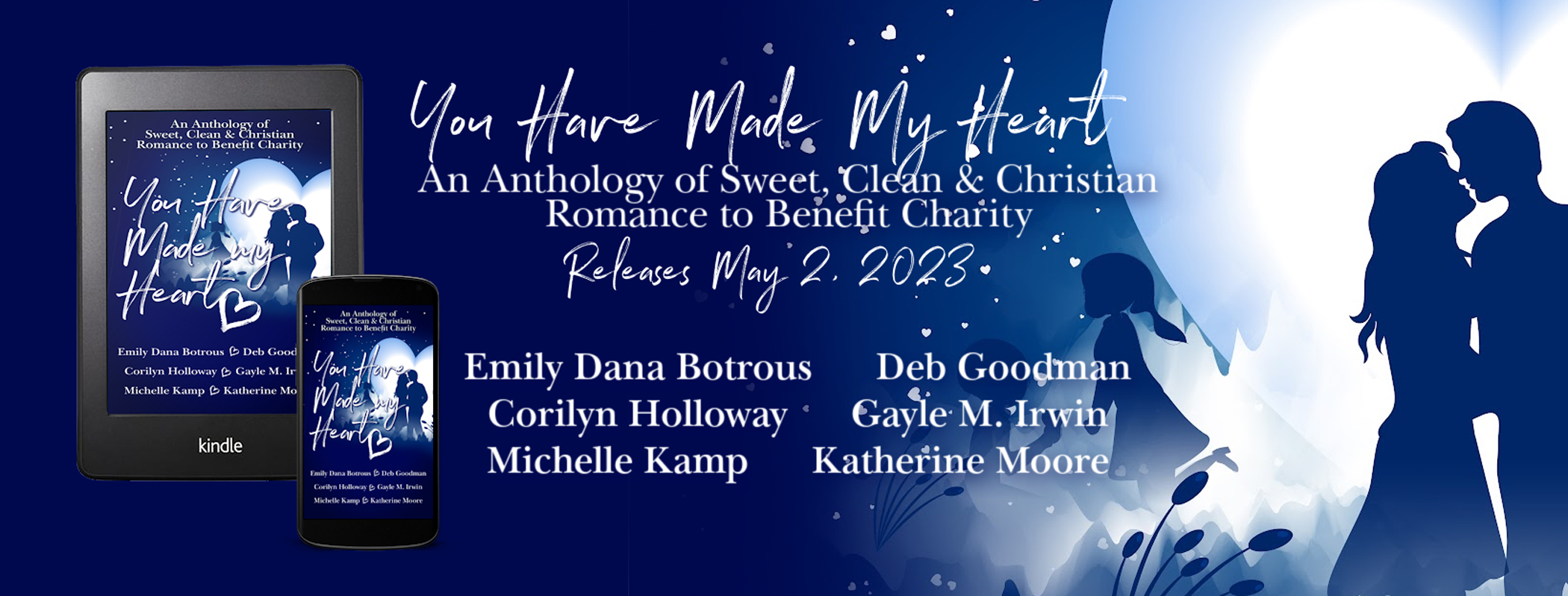The authors involved with the spring book project, in addition to Sessums and Kampmeier (whose pen names are Corilyn Holloway and Michelle Kamp, respectively) are Emily Dana Botrous, Deb Goodman, Katherine Moore, and the writer of this story, Gayle M. Irwin. Some of the sweet romance stories include topics of single dads, second chances, family sagas, and animal rescues.