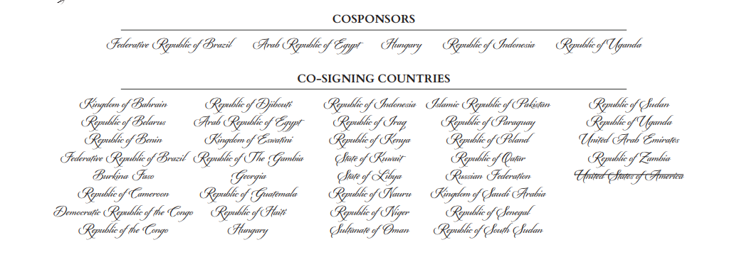 Geneva Consensus Declaration sponsor and signers - minus the U.S.