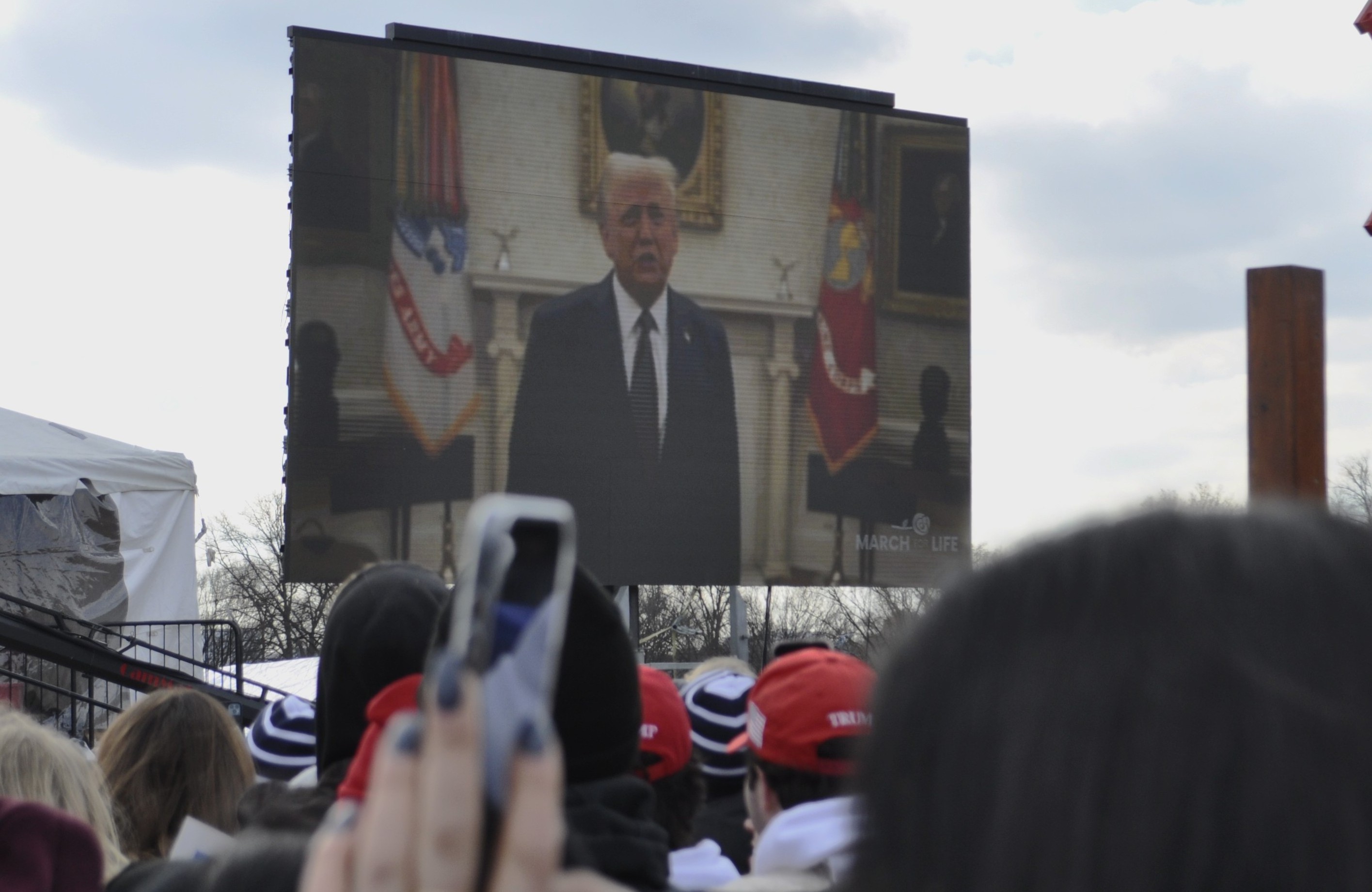 President Donald Trump addresses the 2025 March for Life rally via video/Lisa Bourne