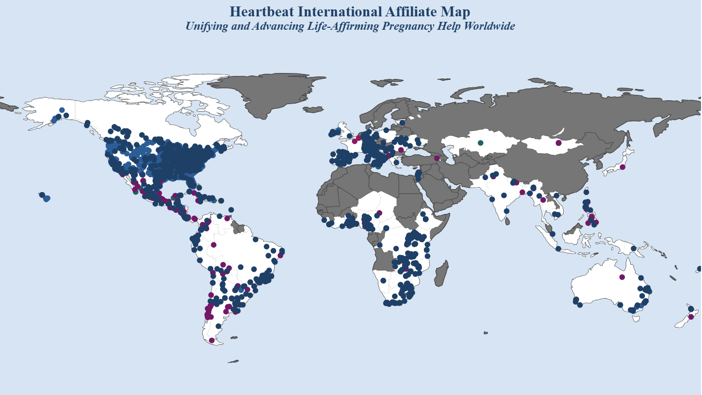 Heartbeat is the largest network of pregnancy help organizations in the U.S. and globally, with around 4,000 affiliates worldwide, pregnancy help organizations in more than 100 countries worldwide on six continents. Of Heartbeat’s 4,000 affiliates, more than 1,400 are international.