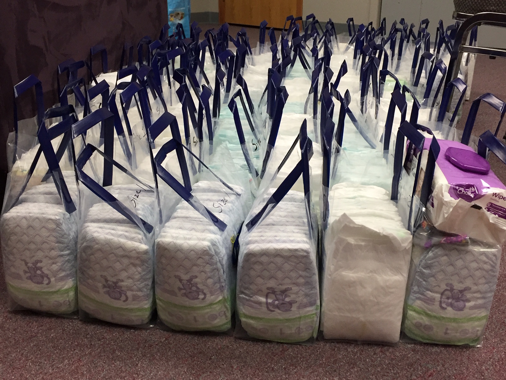 Over the past month, a couple of high schoolers have come into the office when there are no clients and put together bags of diapers and wipes. We’ve distributed many to our current and former clients. We have several more bags of diapers and wipes, and on the Saturday before Mother’s Day, we’ll have a community giveaway.