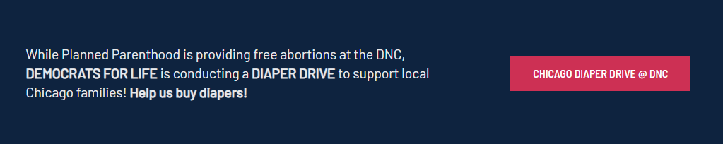 “Planned Parenthood is offering free abortions during the convention,” the donation page states. “This disrespects women and is an attack on human rights. Please support our diaper campaign for Chicago families.”