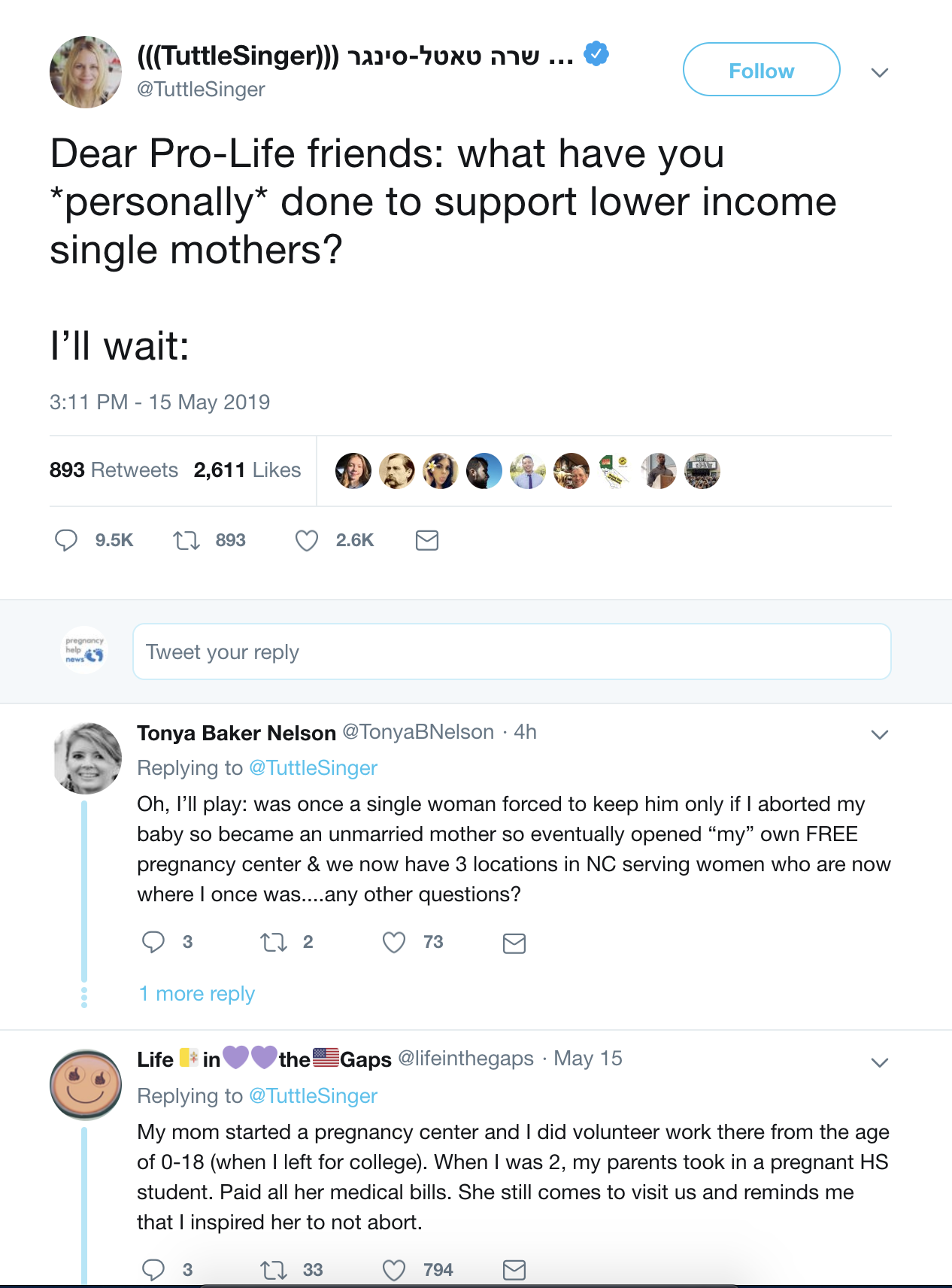 At the time of this posting, the Tweet had received more than 10,000 replies detailing the ways in which individuals and pregnancy help organizations have tended to the various financial and emotional needs of single mothers around the globe.