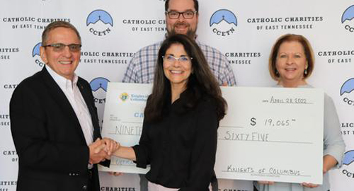 Pregnancy Services Program Leader. The donation comes from Knights of Columbus Council 15706 at All Saints Parish in Knoxville