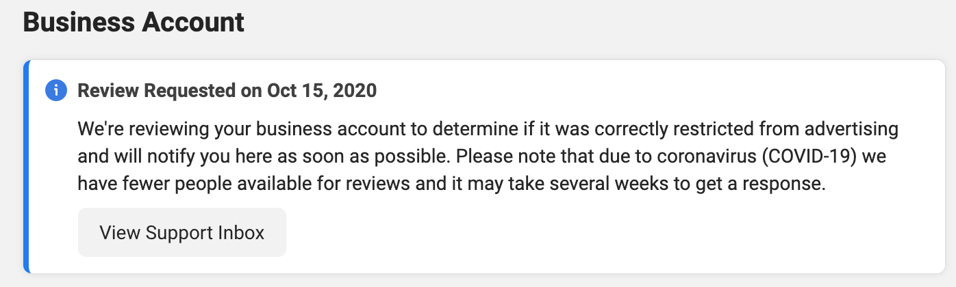 Immediately, we reviewed all of the policies and could find none that we had violated. Confused, we submitted a request to have our account reviewed. Shockingly, we received a notice that it could take weeks for us to receive an answer.
