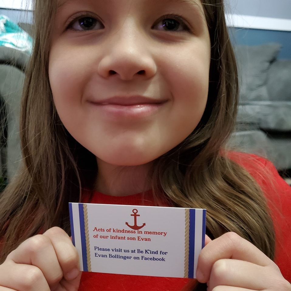 Evan also inspired his family to establish “Be Kind for Evan Bollinger,” a project where the Bollinger family performs acts of kindness throughout their community. They have already held a backpack giveaway, a toy drive, a collection of baby items for a pregnancy center, and begun a support group for infant loss.