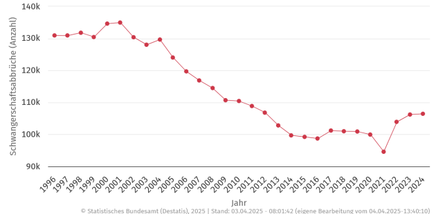 Tweet This: According to statistics, 106,000 terminations of pregnancy were carried out in Germany in 2024, 0.2% more than the previous year.
