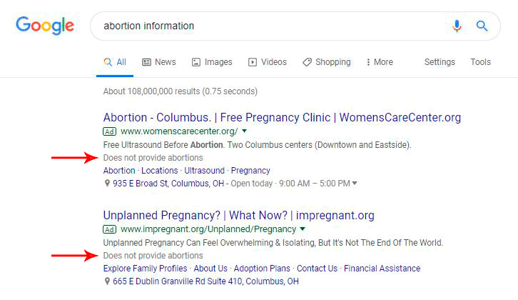 Google announced in May that it would be implementing a new ad policy that would directly affect pregnancy help organizations. The policy requires ads using keywords related to abortion to carry one of two disclaimers: “Provides abortion” or “Does not provide abortions.”