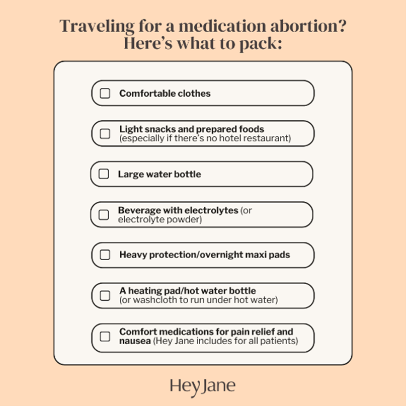 While most abortion providers advise women to undertake no travel for at least 24 hours after the abortion is complete, they also say that ‘if travel is necessary’ to be sure to locate the nearest emergency care.