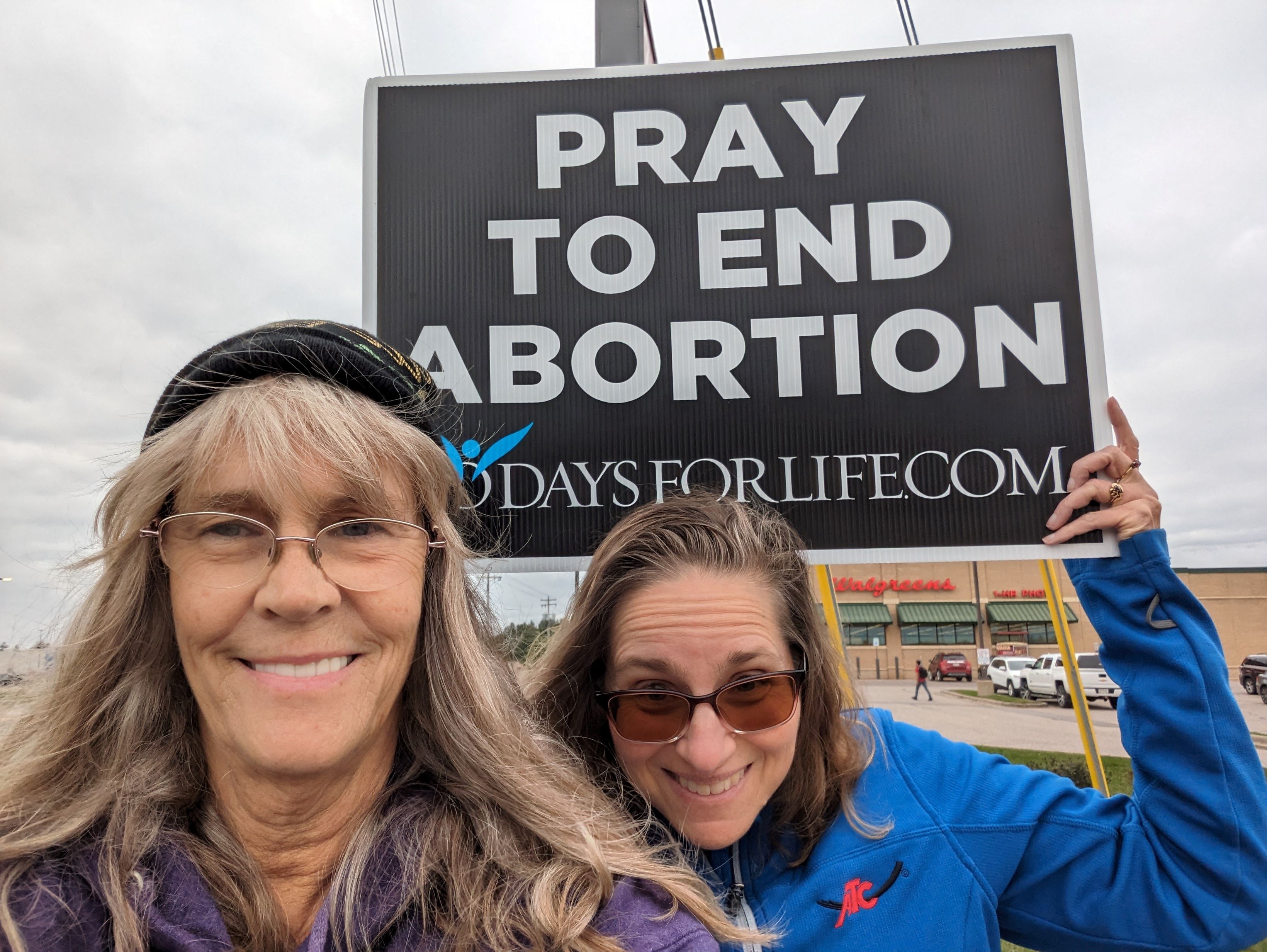 Joni had three signs explaining why she was standing outside as customers milled in and out for prescriptions and over-the-counter medications and toiletries. Joni prayed both silently and aloud, sometimes choosing to sing songs such as “Jesus Loves the Little Children.”