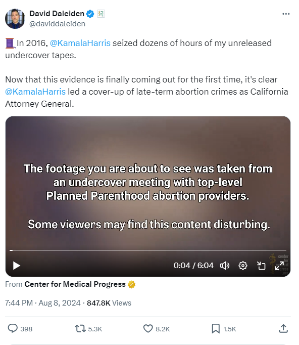 Tweet This: Perhaps no one has more effectively exposed Kamala’s enchantment with abortion as David Daleiden, of the Center for Medical Progress (CMP).