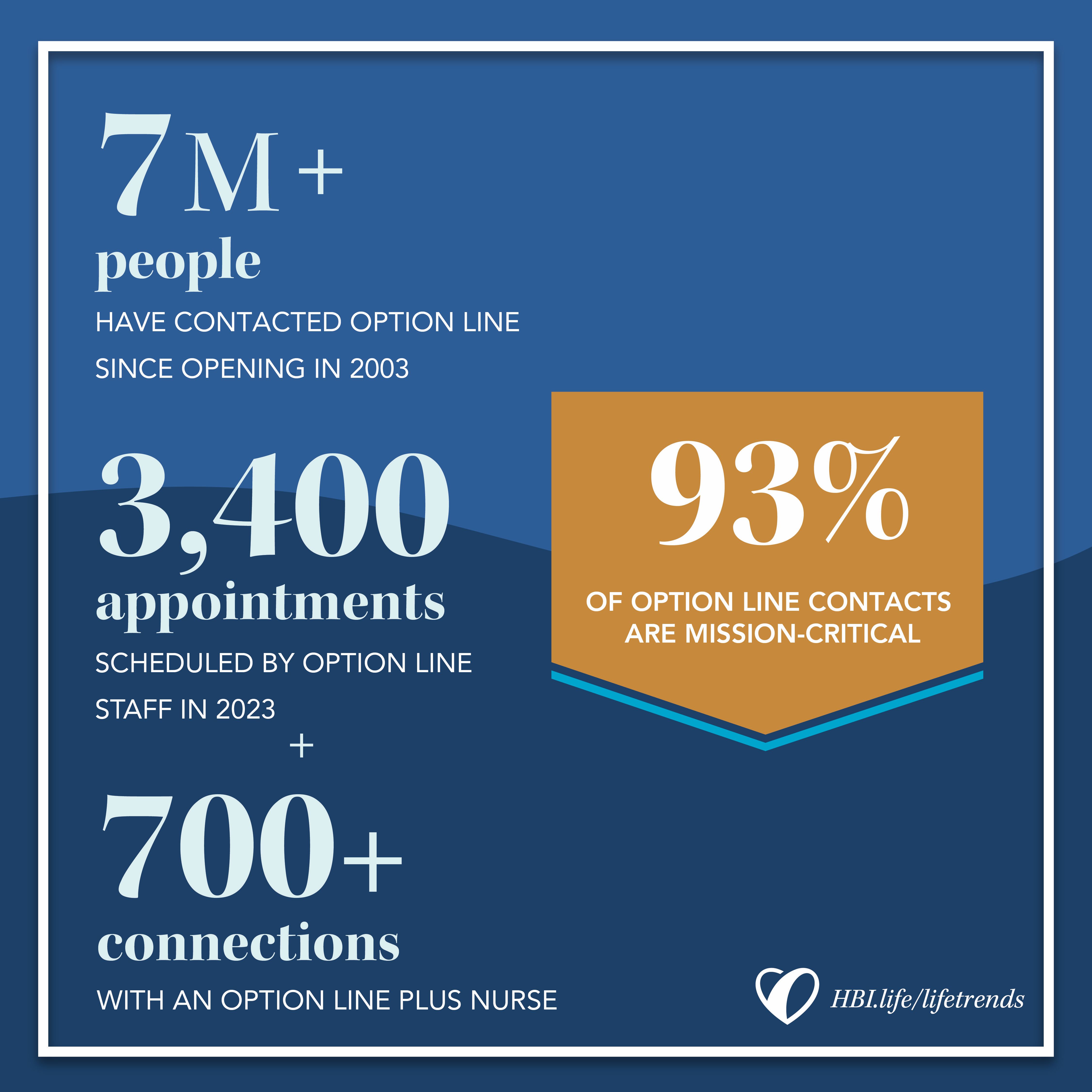 Option Line, powered by Heartbeat, is a 24/7 pregnancy helpline, serving as a vital resource, especially when pregnancy centers are closed, ensuring that assistance is available to women in need around the clock.