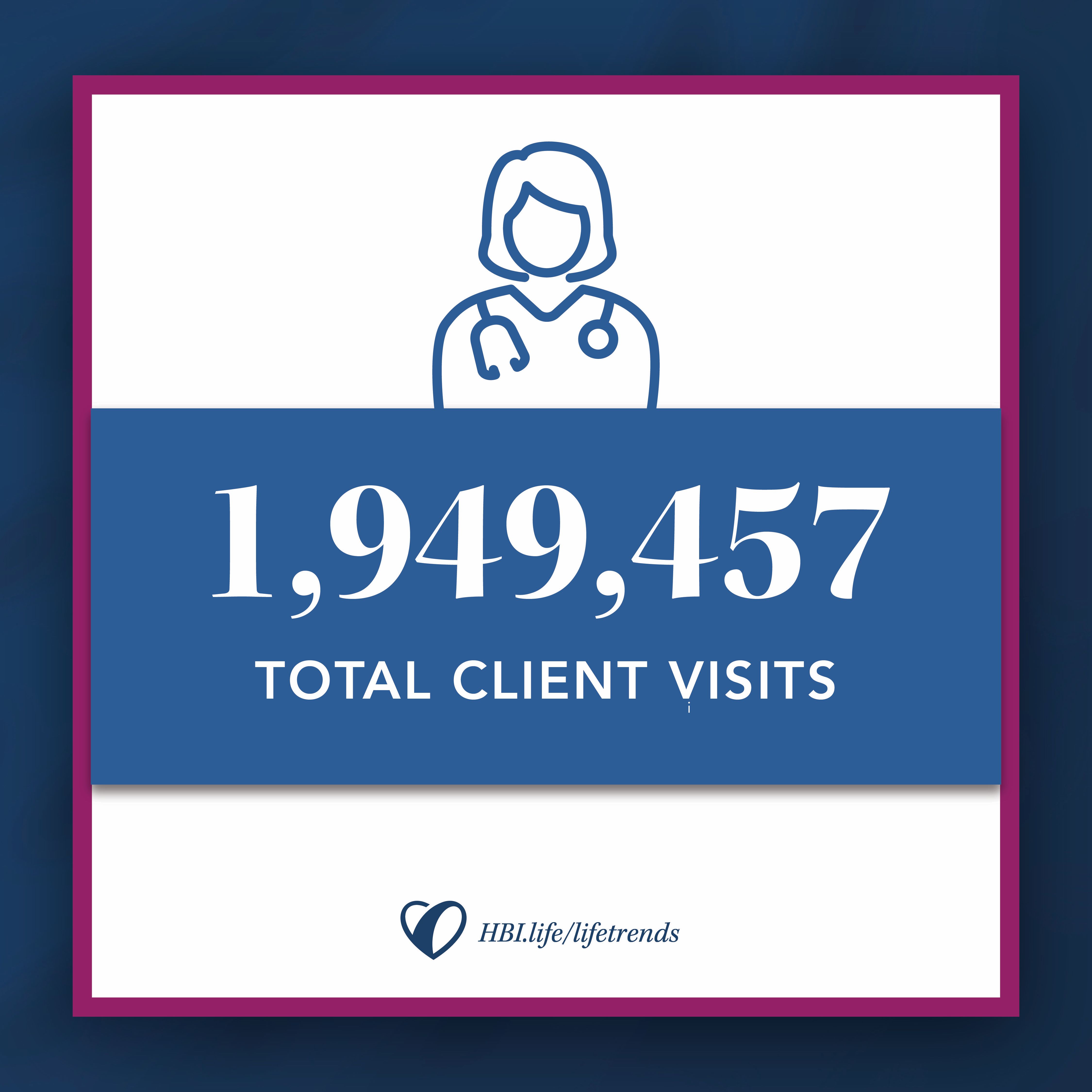 There were 1,949,457 total client visits to affiliated pregnancy help organizations in 2023.