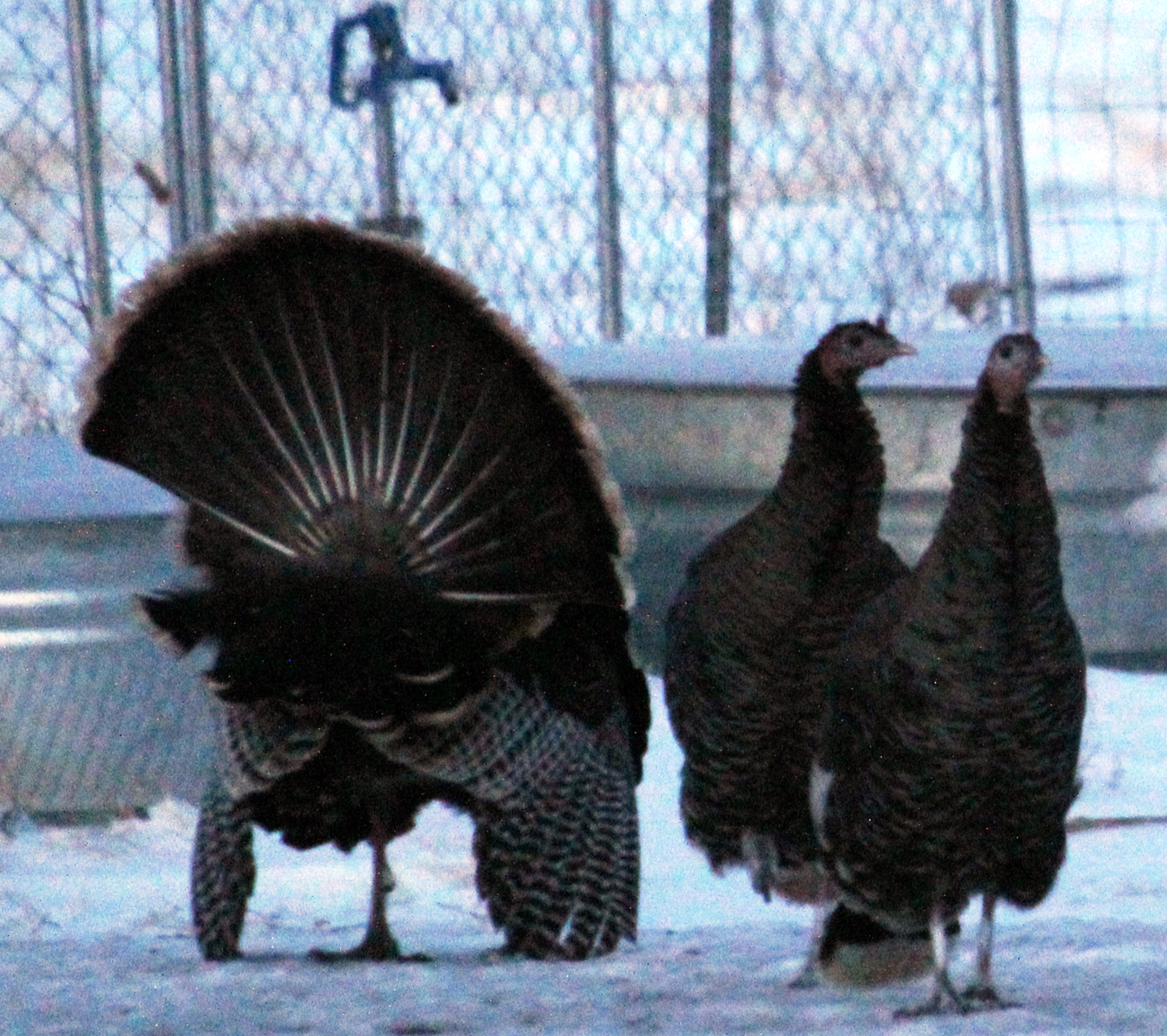 The sunrise spilled across the landscape, generating splashes of orange, rose, and powder blue. Male turkeys gathered, gobbles resounding as they displayed their fanned tails and strutting to show off for the females as dawn slowly replaced dark.