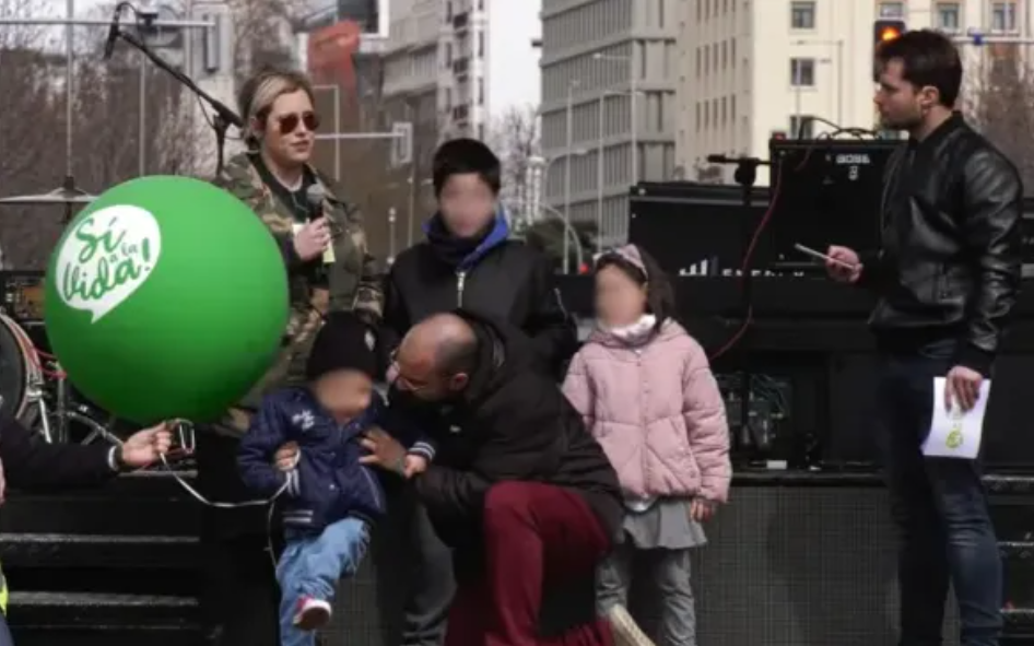 Clara y Diego, together with their three children, took the stage to share their story at Spain's 2024 March for Life. Crédit: Yes to Life/Sí a la Vida
