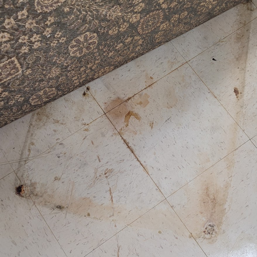 The blood-stained floor at the Women's Clinic