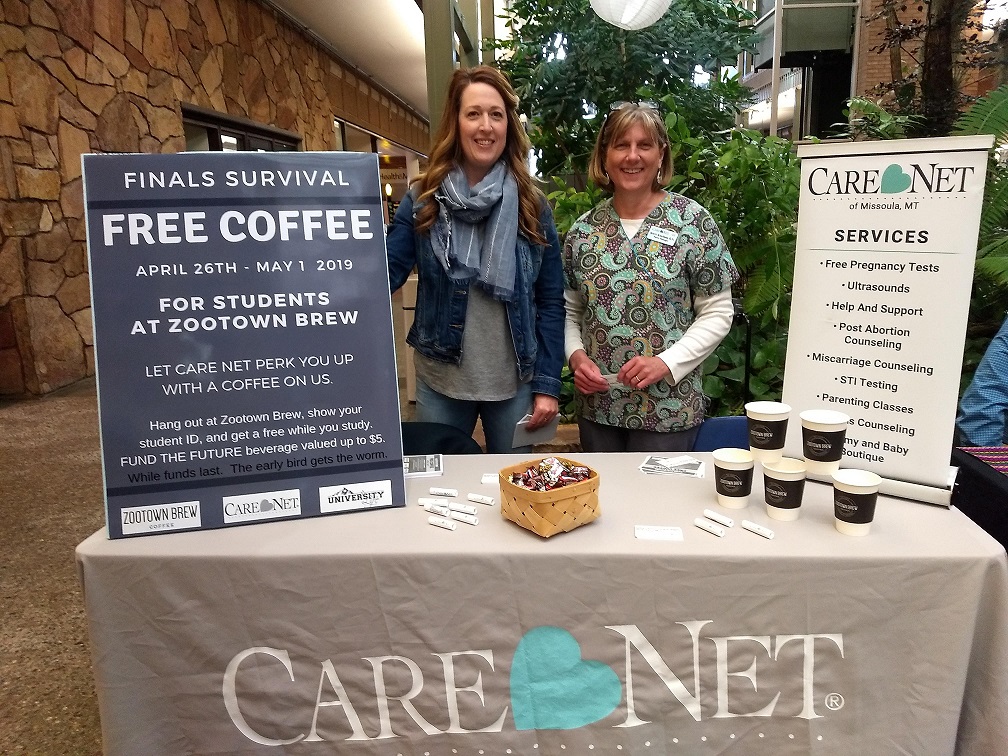 During the past few years, Care Net of Missoula has conducted outreach to the students through twice-monthly table visits, end-of-the-semester free coffee and other projects. These endeavors have met little resistance in the town known as the least conservative in the state.
