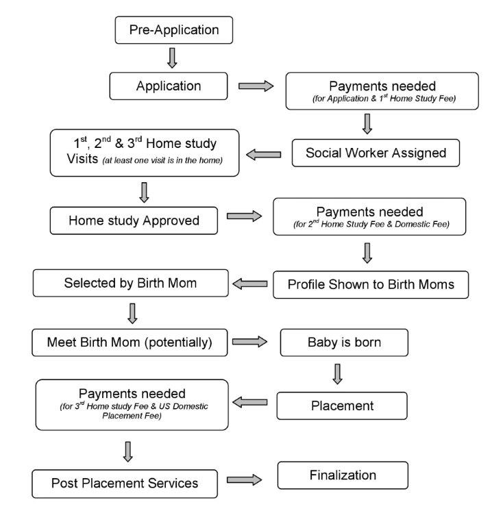 We filled out a short application. When New Horizons accepted that we filled out a longer one. Once that was accepted, we made a payment. They assigned us a social worker, who met with us two or three times before she came to our house, talked to our children, and completed the home study.