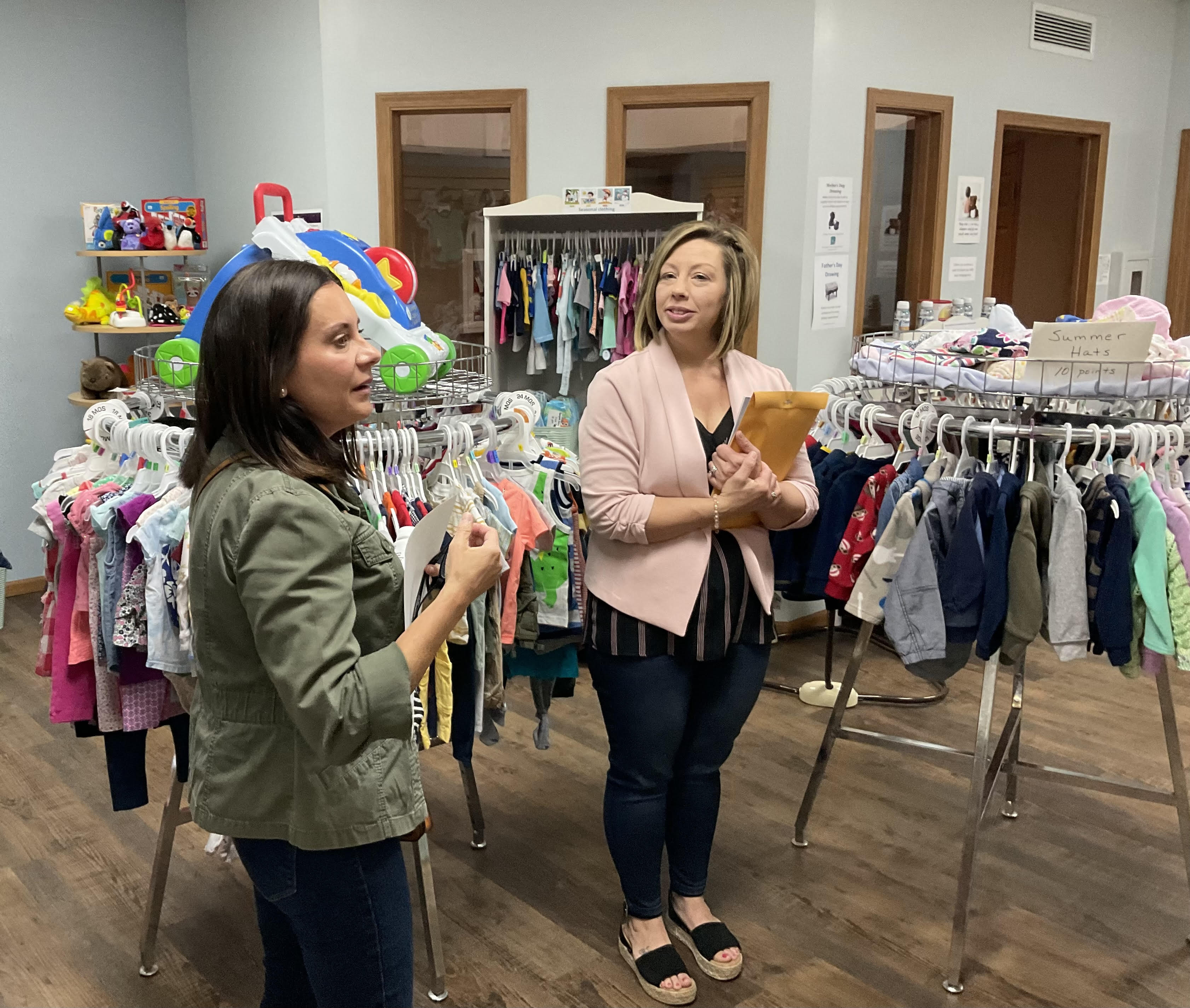 The nurse offered free prenatal vitamins to Crystal noting that her body is currently going through a lot, and that these will help her. Additional information about their ‘earn while you learn’ program and a short tour of their baby boutique followed.