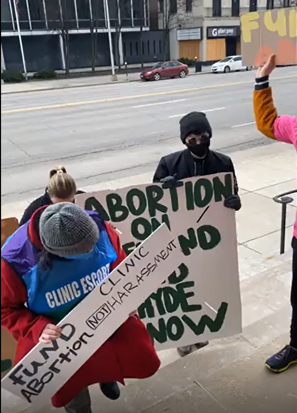 in Columbus, OH, shouting pro-abortion slogans and profanity,