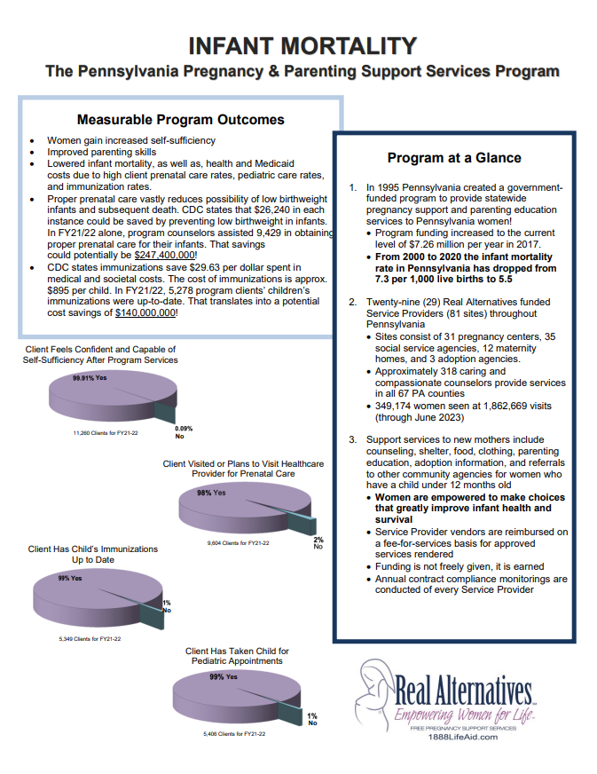 The pregnancy help funding program administered by Real Alternatives is “award-winning,” the group’s statement said, and has “been commended for its work by two Pennsylvania governors, three secretaries of the Department of Public Welfare, one United States vice president, and one assistant secretary of the US Health and Human Services in charge of Temporary Assistance for Needy Families (TANF) funding.”