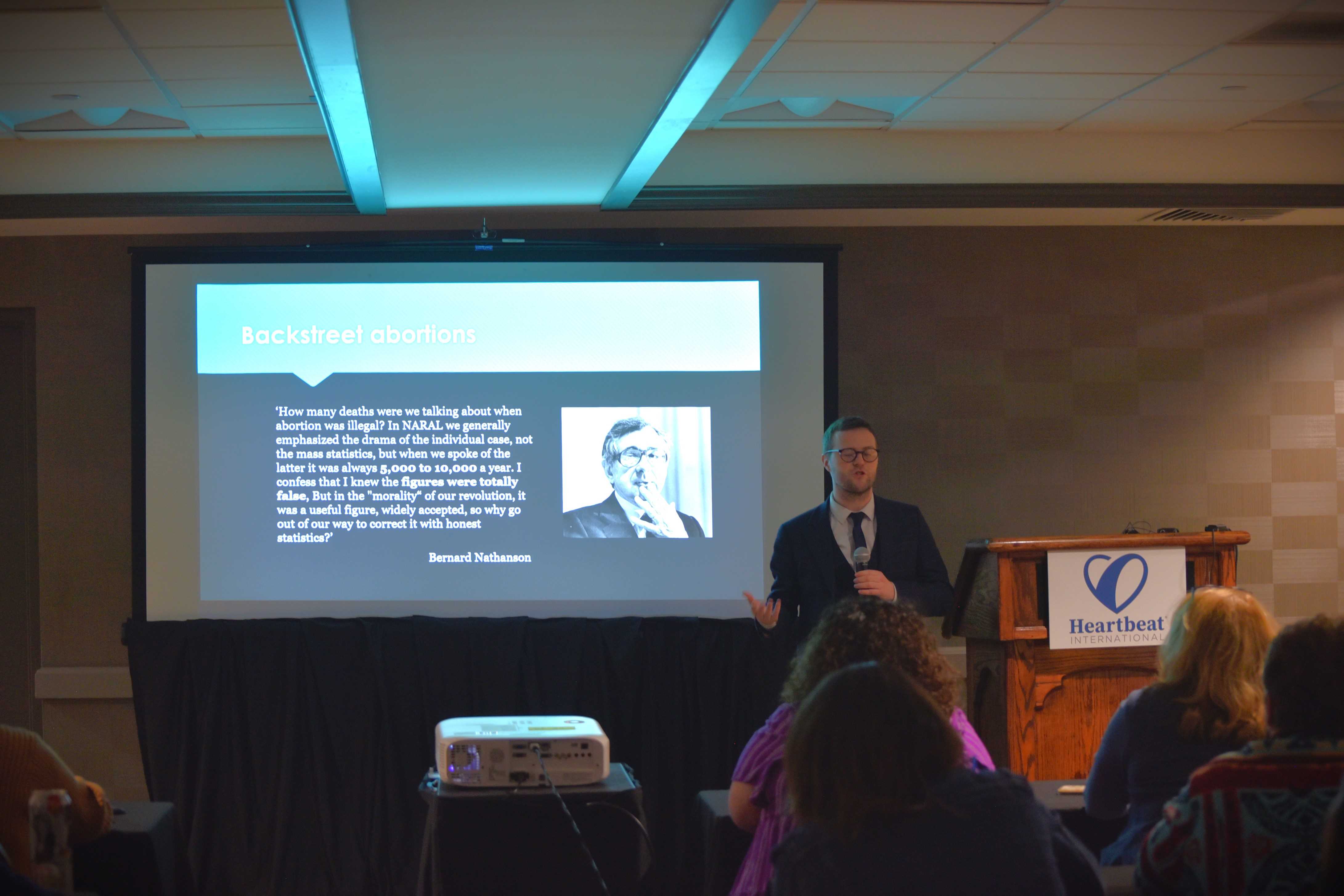 Oxford doc at Heartbeat Conference busts myth of legalized abortion decreasing “backstreet abortion” deathsDr. Calum Miller presents The Truth About Backstreet Abortions at the 2023 Heartbeat International Annual Pregnancy Help Conference (Lisa Bourne)