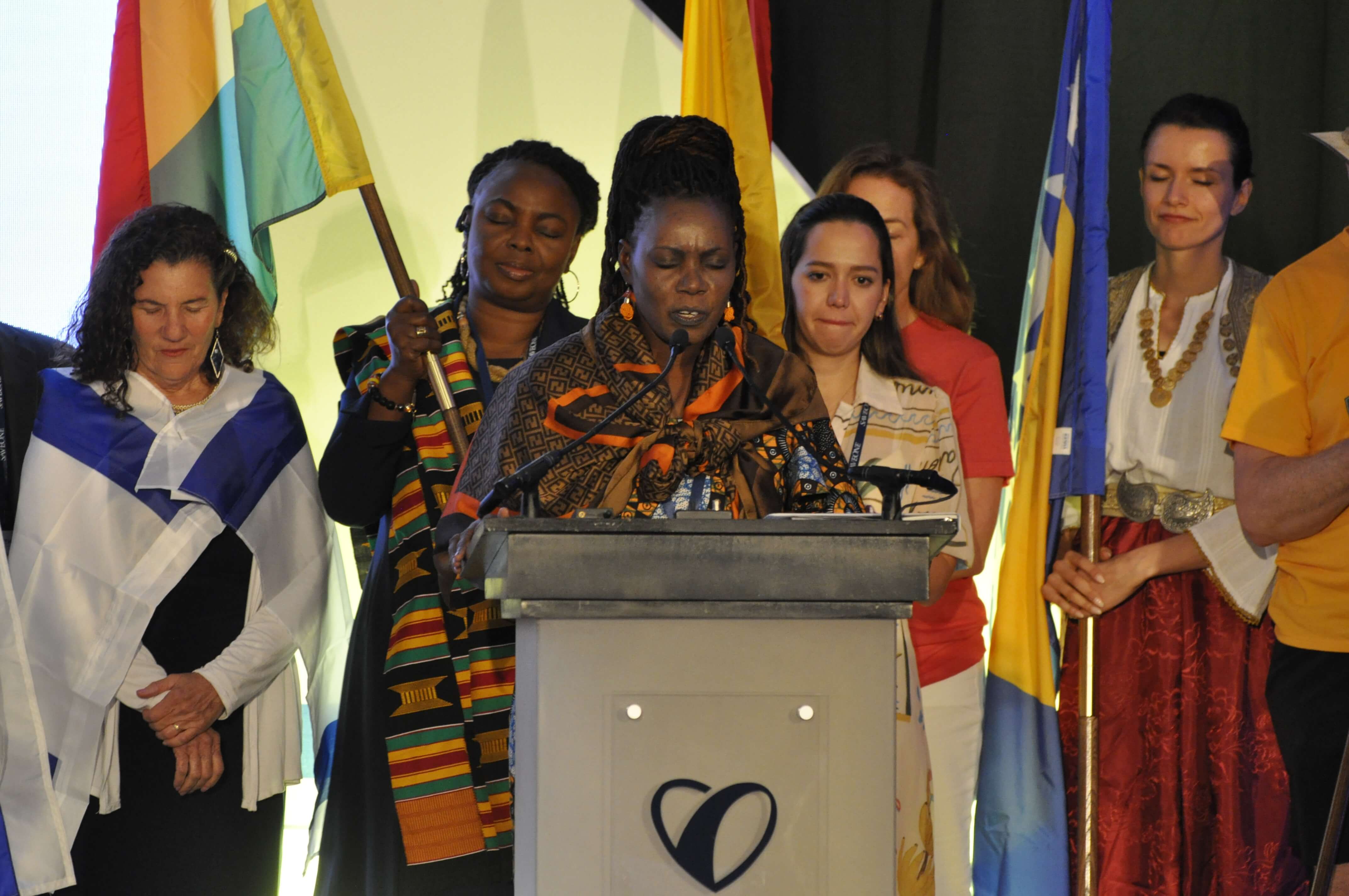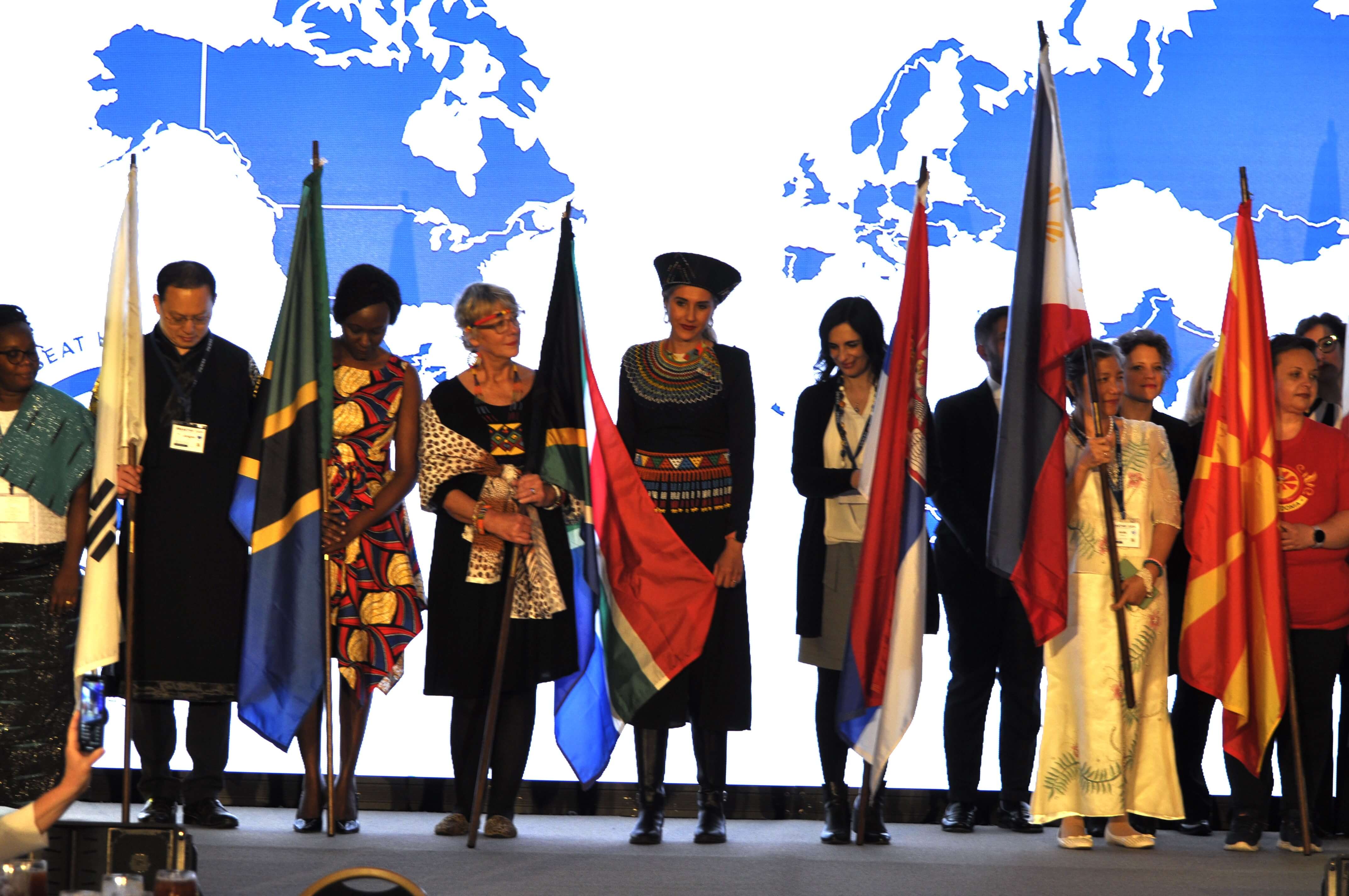 Next, the international attendees in distinctive attire carried their own countries’ flags onto the stage: Australia, Bosnia-Herzegovina, Canada, Colombia, Ghana, Israel, Italy, Macedonia, Philippines, Serbia, South Africa, South Korea, Tanzania, Togo, Uganda, Ukraine, Zambia, Zimbabwe.