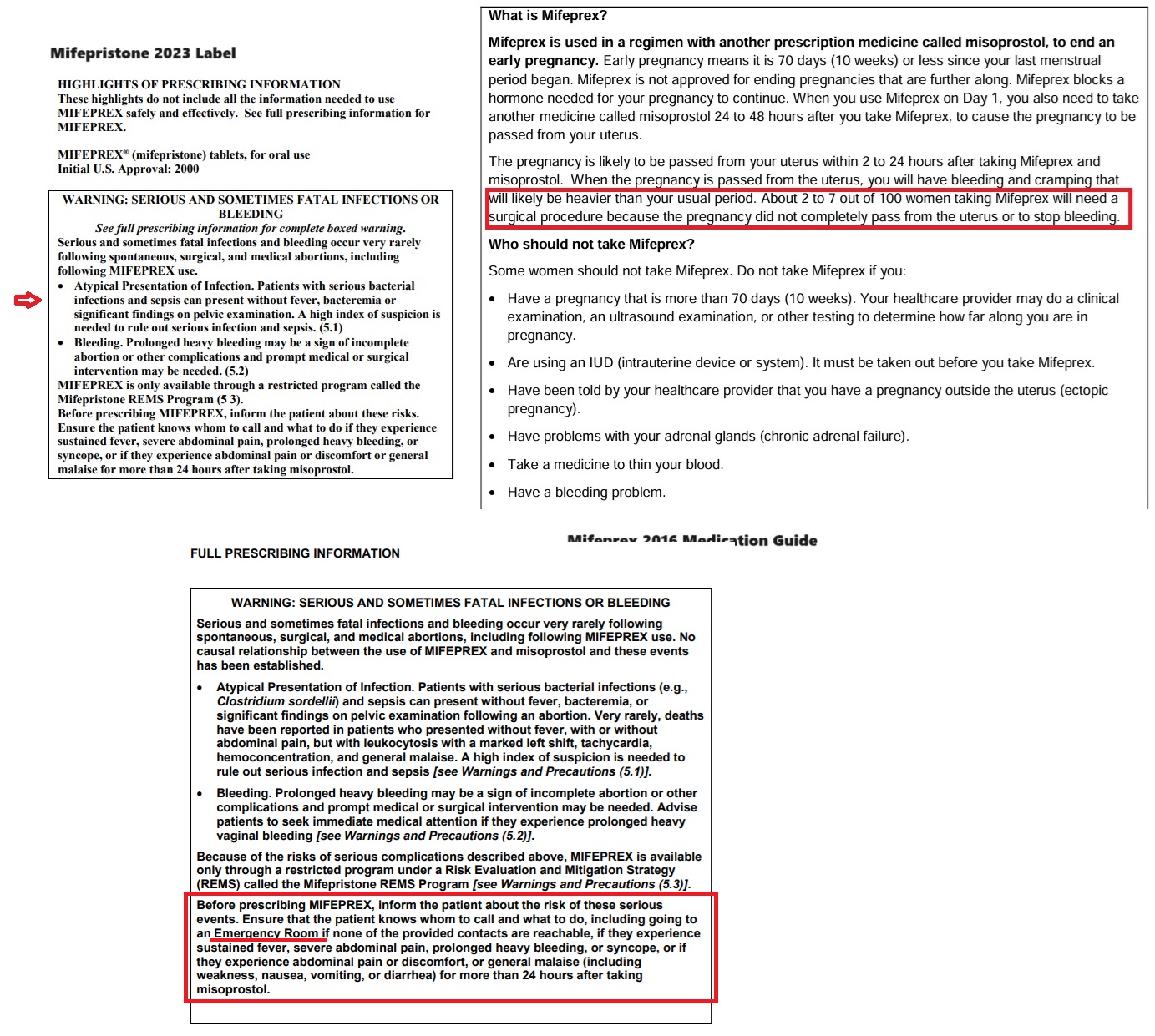On that label, FDA estimates that 2.9 to 4.6 percent of women will visit the emergency room after taking mifepristone… And FDA’s medication guide acknowledges that as many as 7 percent of women will need surgery after taking mifepristone ‘to stop bleeding’ or to complete the abortion…
