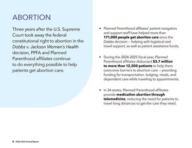The report itself offers a telling example. On page 8, Planned Parenthood highlights that during the 2024–2025 fiscal year, its affiliates disbursed $3.7 million to more than 12,200 patients to help them travel for abortion care, covering transportation, lodging, meals, and dependent care. This is not the language of an organization in retreat. It is the language of one actively investing in a coordinated, nationwide abortion access strategy.