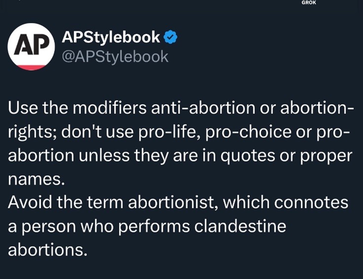Through its stylebook, the premier writing and editing reference for newsrooms, classrooms and corporate offices worldwide, the Associated Press (AP) surrendered its integrity to protect the abortion industry. The Heritage Foundation outlined the deception encouraged in the AP guide. Some of the of the directives for dishonesty include: