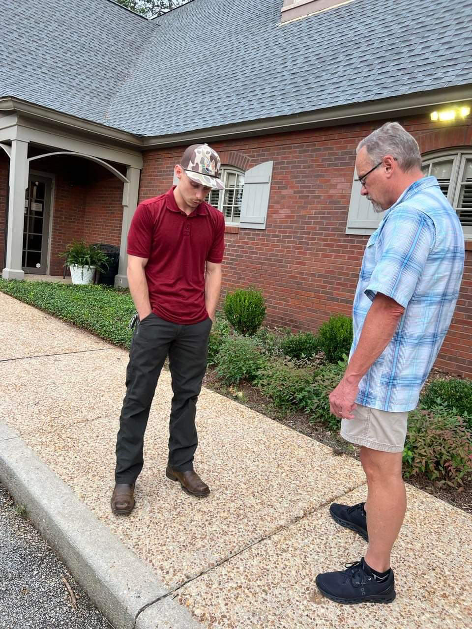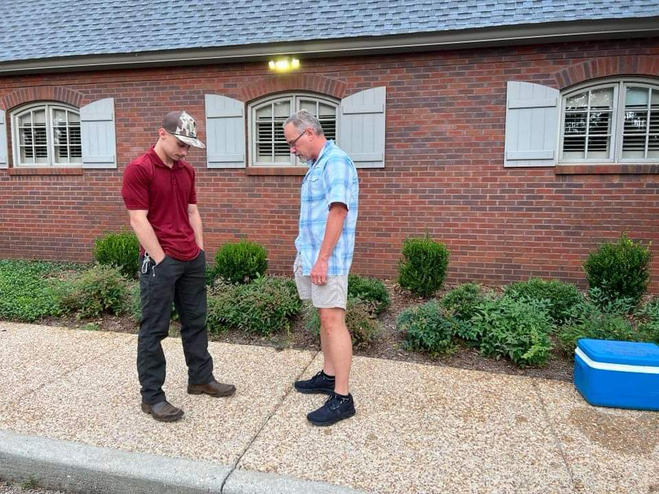 As of late June the center was having a male military veteran monitoring both buildings each afternoon. Beginning in the early evening 2-hour shifts of males praying begin and go through the night until 9 a.m. when the center's morning prayer is over. These men all walk the exterior premises and pray. Some do Bible studies together. The two men pictured below are the center's Sunday school leader and a young man from the class that he mentors.
