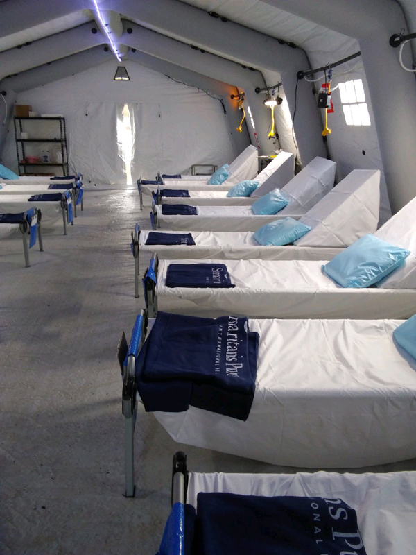 “I served as a ward nurse on the female ward, working the night shift,” she explained. “Being in a tent is unique – there are no bathrooms, just a port-a-potty. Most of the women couldn’t walk very far, so we ambulated patients there, and we, as staff, could only go to the bathroom once during our shift. We had no LPN, so we did everything, including turning and repositioning patients, everything you can imagine regarding respiratory care.”