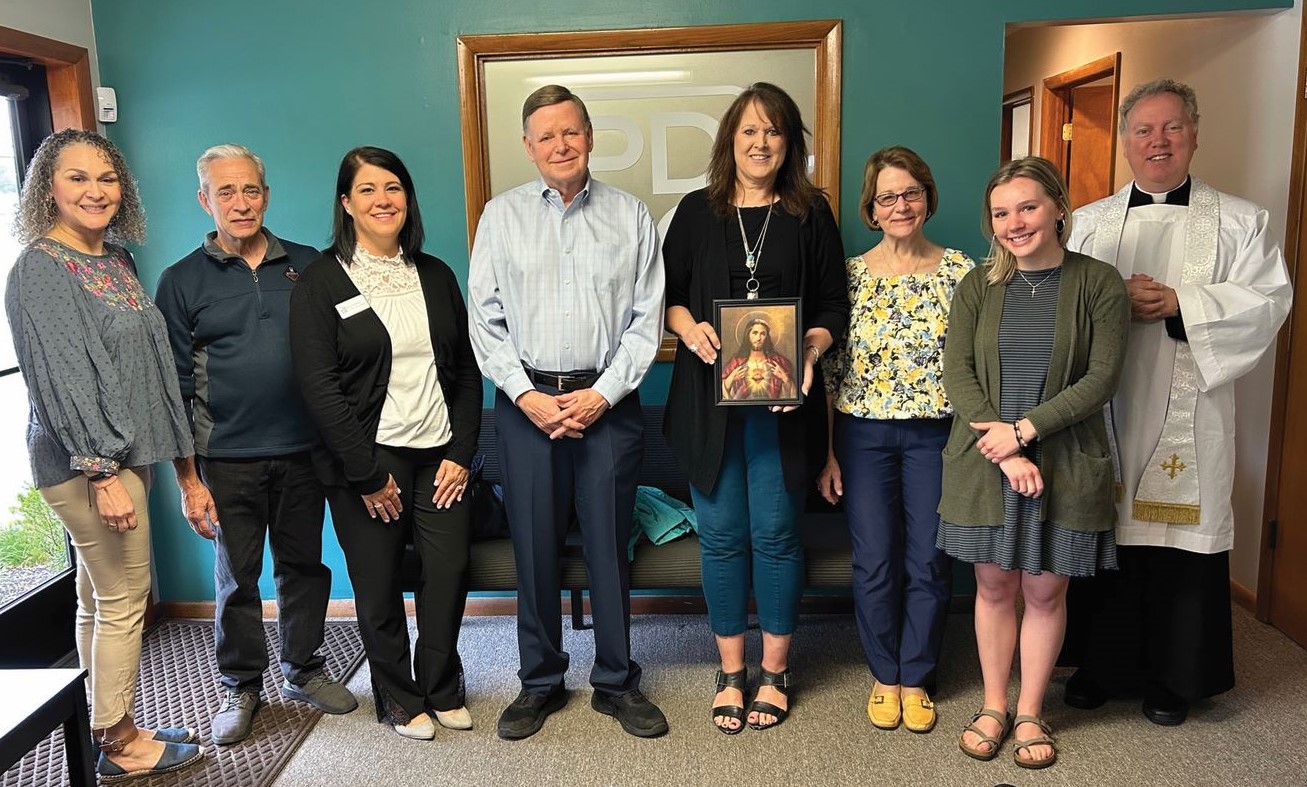 We are thankful for Bishop Earl Fernandes, Father Jonathan Wilson and Father Peter Gideon, who recently prayed a blessing over our centers, our team, our volunteers and the women who walk through our doors for help by providing a Sacred Heart enthronement for the workplace. PDHC founders Mike and Peggy Hartshorn joined us for this special blessing at our North Center.