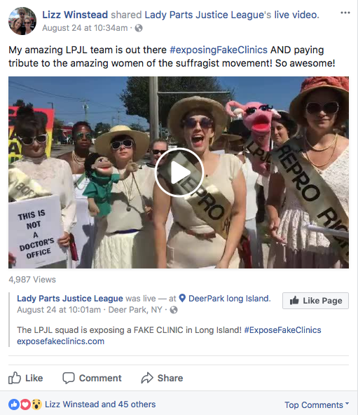 Gloria Schreiber, the center’s executive director, said even though she and her staff have been following the latest on Lady Parts Justice League’s campaign to “Expose Fake Clinics” over the past month, it still didn’t dawn on them at first that it was the same group.