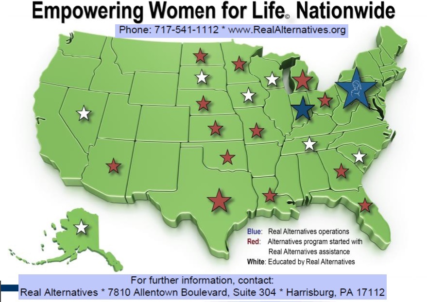 Real Alternatives uses a network of 29 service providers with 86 pregnancy support centers, maternity homes and other pregnancy help sites in 33 counties, Heartbeat International affiliates among them, with 234 caring and compassionate trained counselors to provide free pregnancy support and parenting education services to women and families in Pennsylvania.