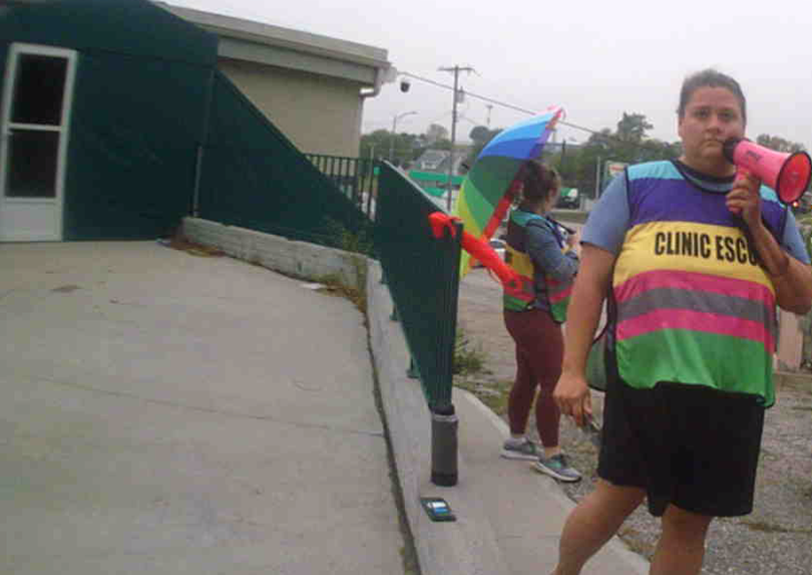 while other abortion escorts use umbrellas to block them