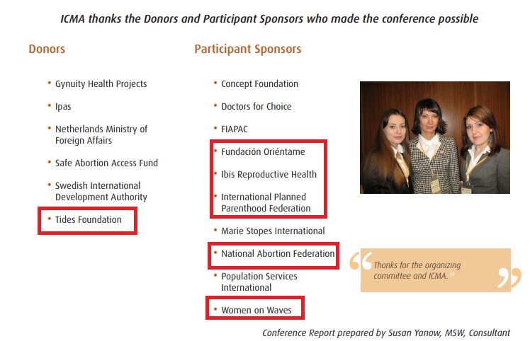 This 2008 tax document indicates the “anonymous” funder is the Tides Foundation, which gave the Latin abortion chain $550,000. In 2010, the Tides Foundation also funded an international conference on abortion pill expansion along with IBIS, Planned Parenthood, and the National Abortion Federation.