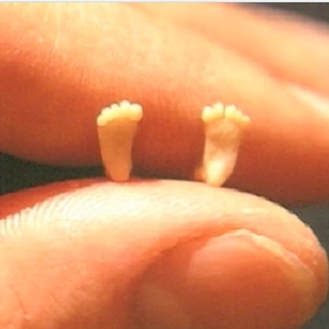 She had seen a photo in her local newspaper of the tiny feet of a 10-week-old baby on the one-year anniversary of Roe and was haunted by the picture. Modeled after the image, the Precious Feet would become the international pro-life symbol, with tens of millions distributed around the world.