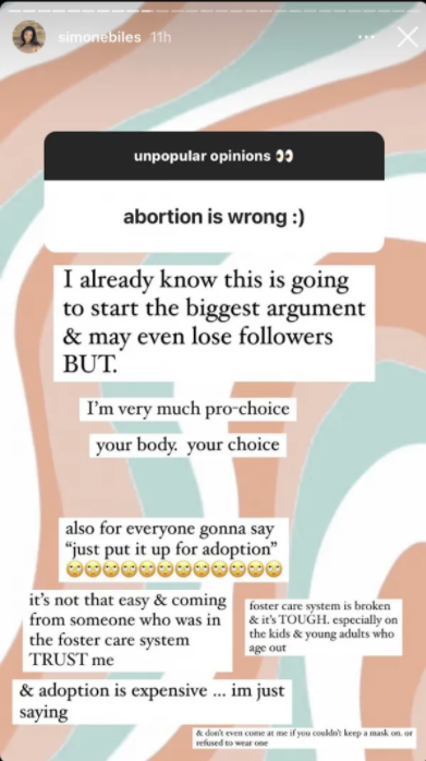 Sincere question—what is the choice Biles was stating she supports?