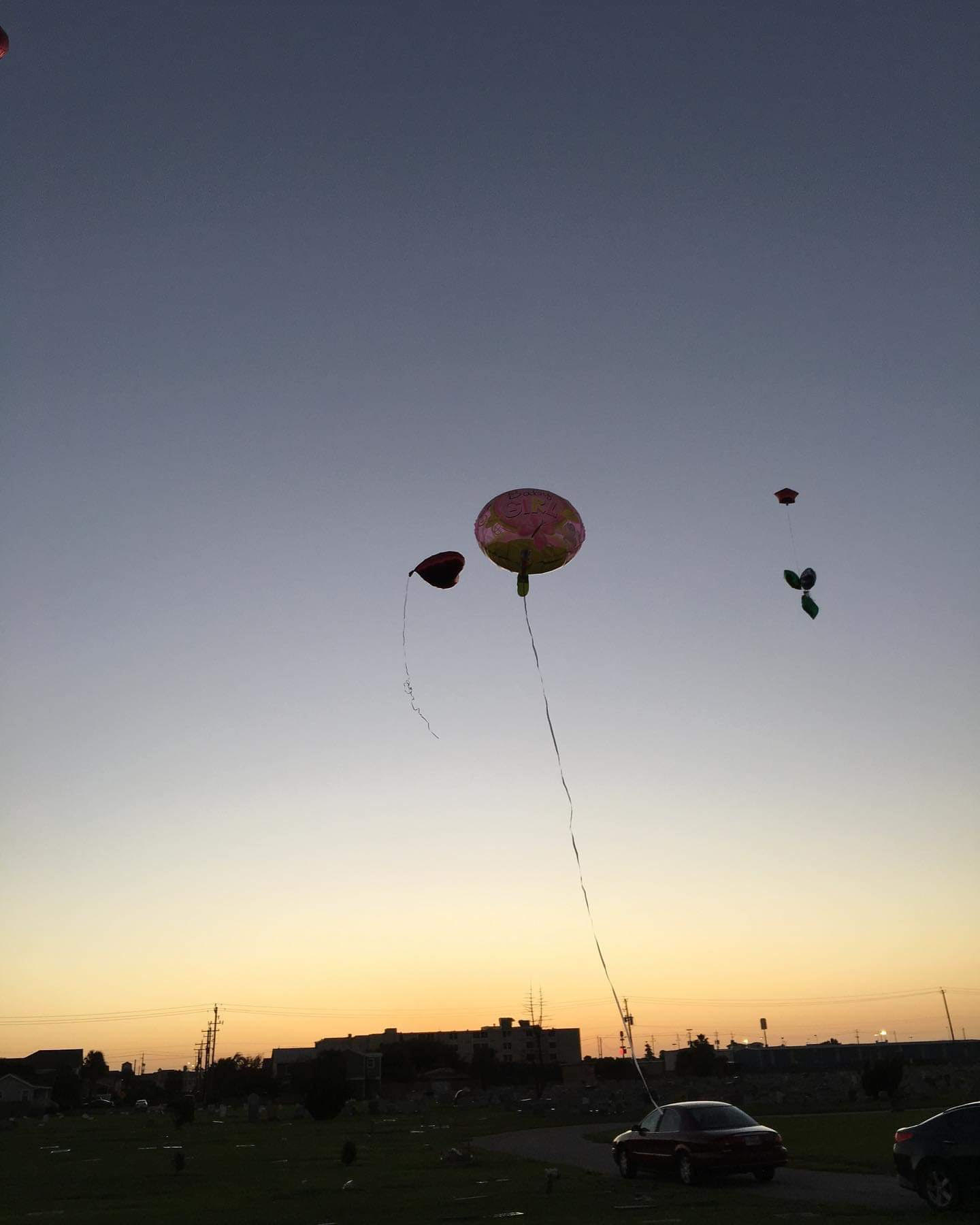 Graveside balloon release memorializing A’lena -