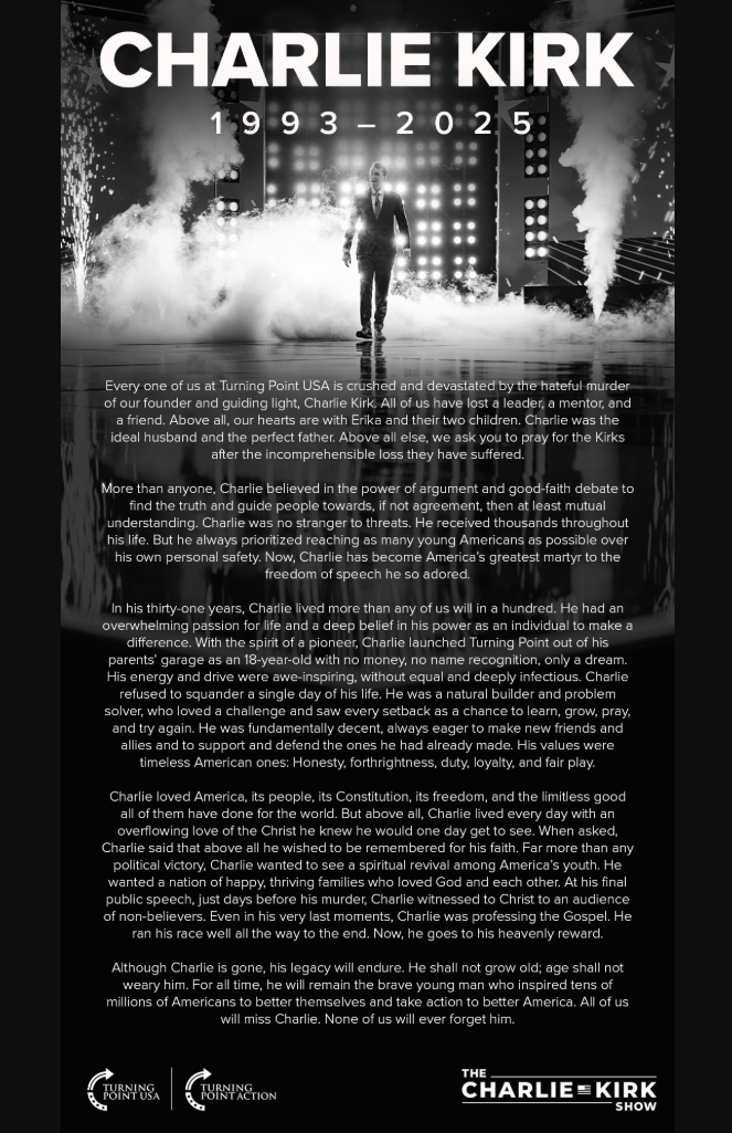 With heavy hearts, we remember Charlie Kirk.