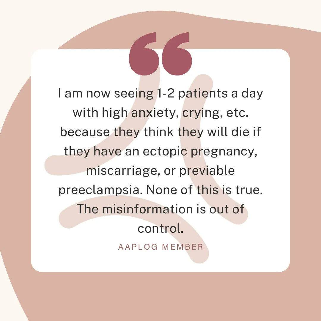 “I am now seeing 1-2 patients a day with high anxiety, crying, etc. because they think they will die if they have an ectopic pregnancy, miscarriage, or previable preeclampsia,” The doctor had stated. “None of this is true. The misinformation is out of control.”