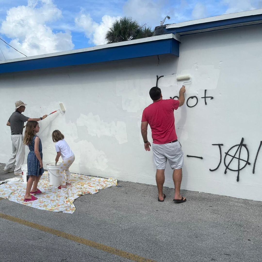“Yesterday was a very difficult day. As many have heard, pro-abortion terrorists attacked and vandalized our Pregnancy Help Medical Clinic in Hialeah, FL, causing thousands of dollars in damages to our building and security system. Today, a wonderful group of volunteers from our community …showed up at the clinic, rolled up their sleeves and got to work. They did not think twice about putting aside holiday plans in order to come out and work on cleaning up the mess that vandals left behind.”